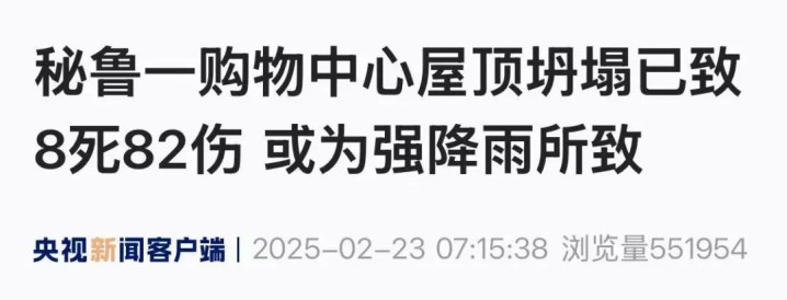 秘鲁总统博鲁阿尔特向伤亡人员家属表示哀悼。特鲁希略市市长在一份官方声明中表示,该地区的强降雨导致屋顶受损。他说:“很有可能是雨水给屋顶结构增加了未曾预料到的负荷,导致屋顶坍塌。”